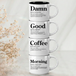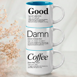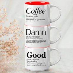 Damn + Good + Coffee. Three words that say it all. The essential coffee lover’s stack featuring Meaningful, Whimsical, and Uncensored definitions on premium 14oz stackable mugs with 4 interior color options.