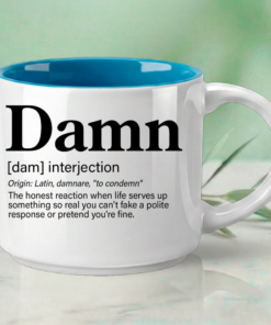 Damn transformed into Word Story Style® definitions – Meaningful, Whimsical, and Uncensored. From The Library at Coffee & Words, this individual mug features three distinct definitions on a premium 14oz ceramic mug with 4 interior color options.