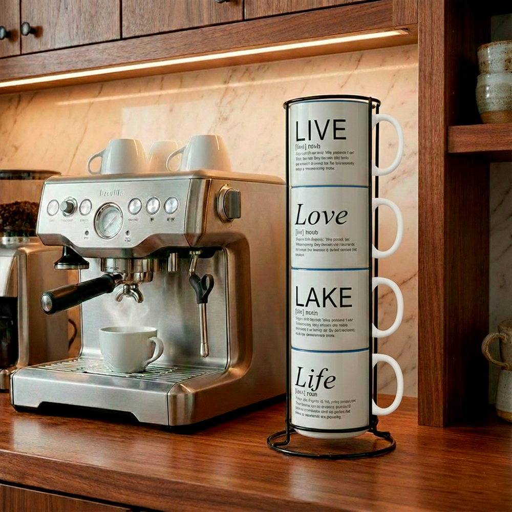 4-Mug Stack | Live + Love + Lake + Life | Live + Love Coffee & Words Collection