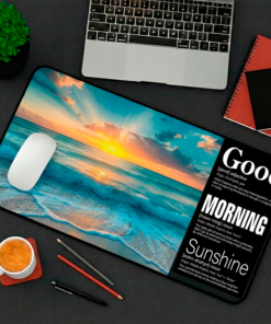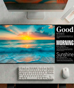 It defines your space with daily intention. Whether it’s under your keyboard or beneath your French press, this mat creates a visual zone that transforms your first moment at your desk into a mindful ritual. The beach sunrise imagery reminds you that every morning brings fresh possibilities, while our whimsical definitions add personality that makes you smile before your first sip of coffee.